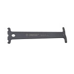Narzędzie umożliwia kontrolę zużycia łańcucha przez jednoznaczne stwierdzenie jego stanu. Wystarczy umieścić wypustki przymiaru między ogniwami łańcucha: