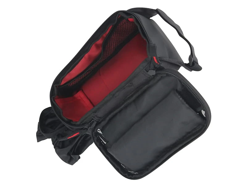 Pod komorą na telefon znajduje się przestrzeń bagażowa o pojemności 1,8L. To idealne miejsce na zapasową dętkę, multitool, naboje CO2 czy batony energetyczne. Siatkowana przegroda wewnątrz ułatwia organizację drobiazgów, takich jak klucze czy monety, zapobiegając ich przemieszczaniu się podczas jazdy.